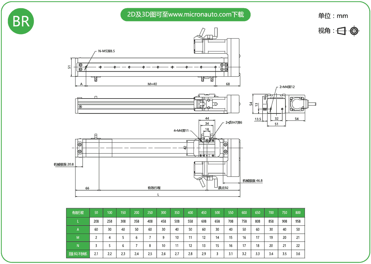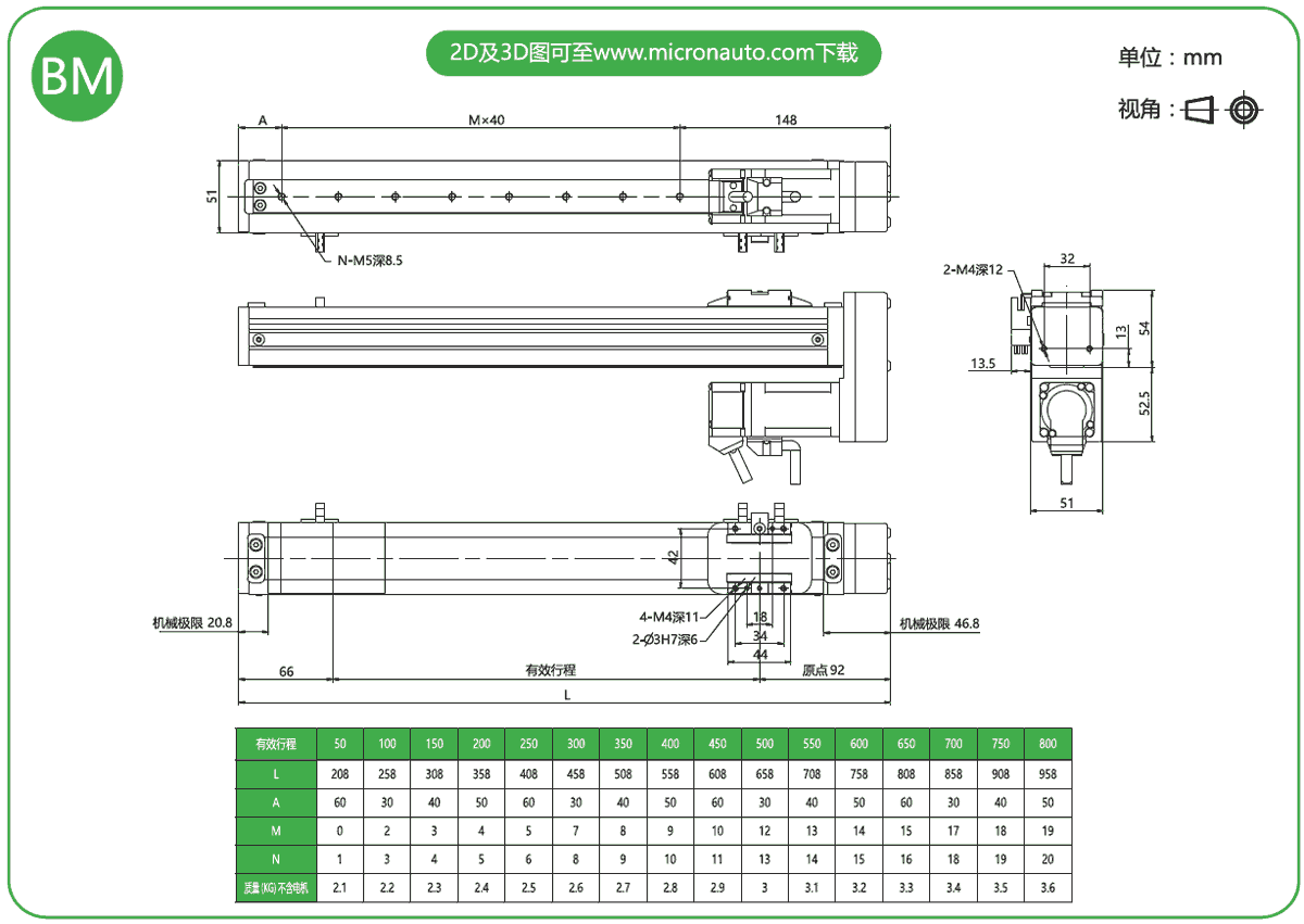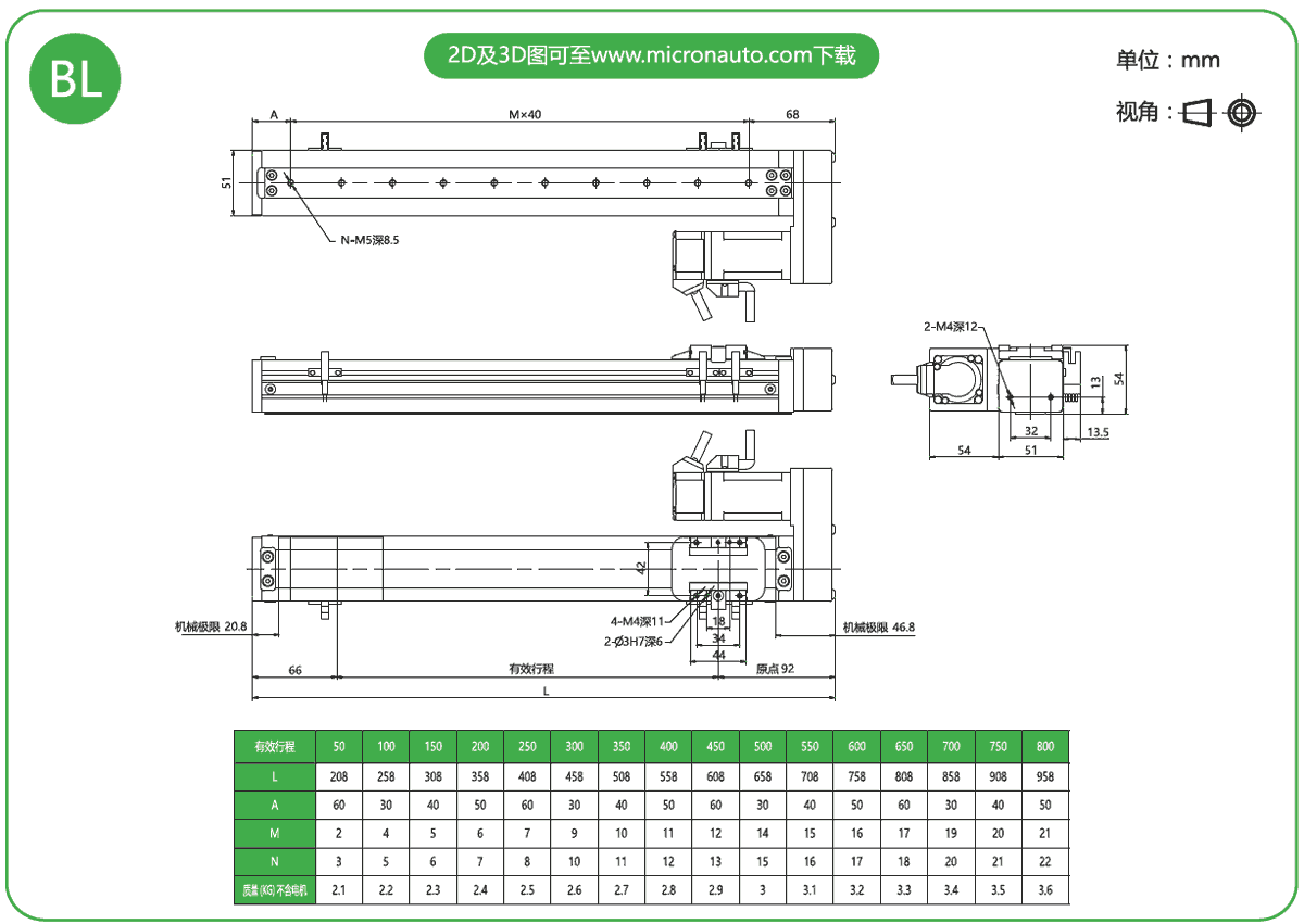 標(biāo)準(zhǔn)有效行程: 100~800mm(間隔50mm)