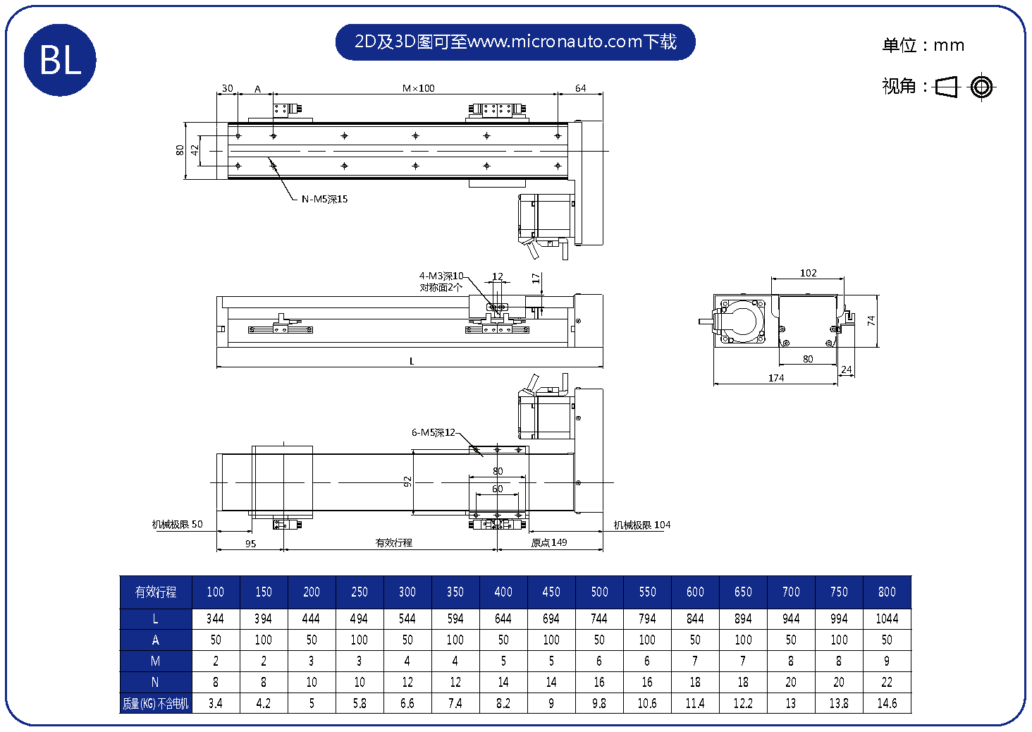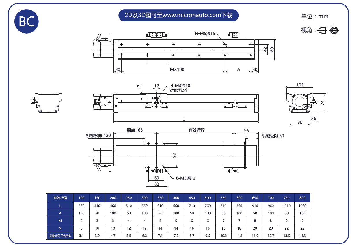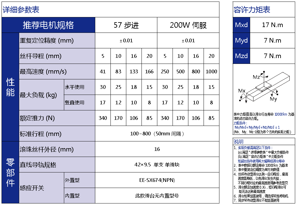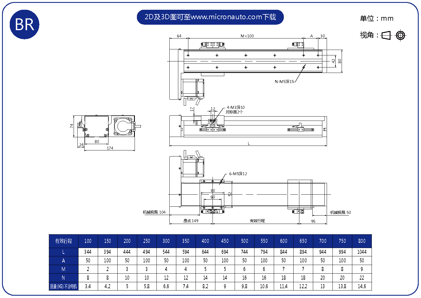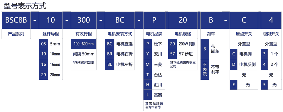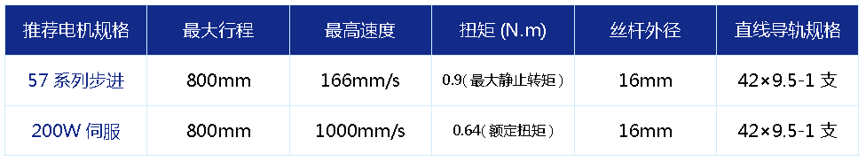 標準有效行程: 100~800mm(間隔50mm)