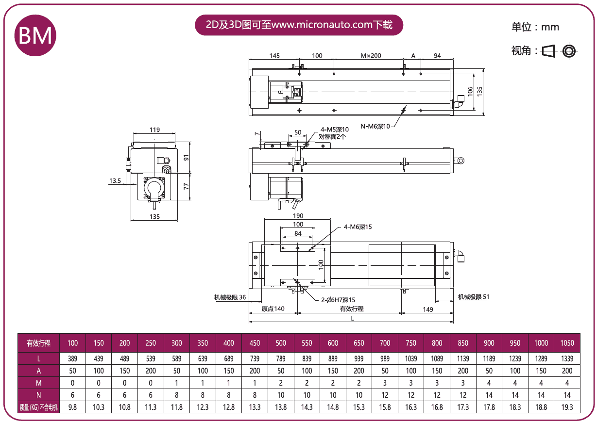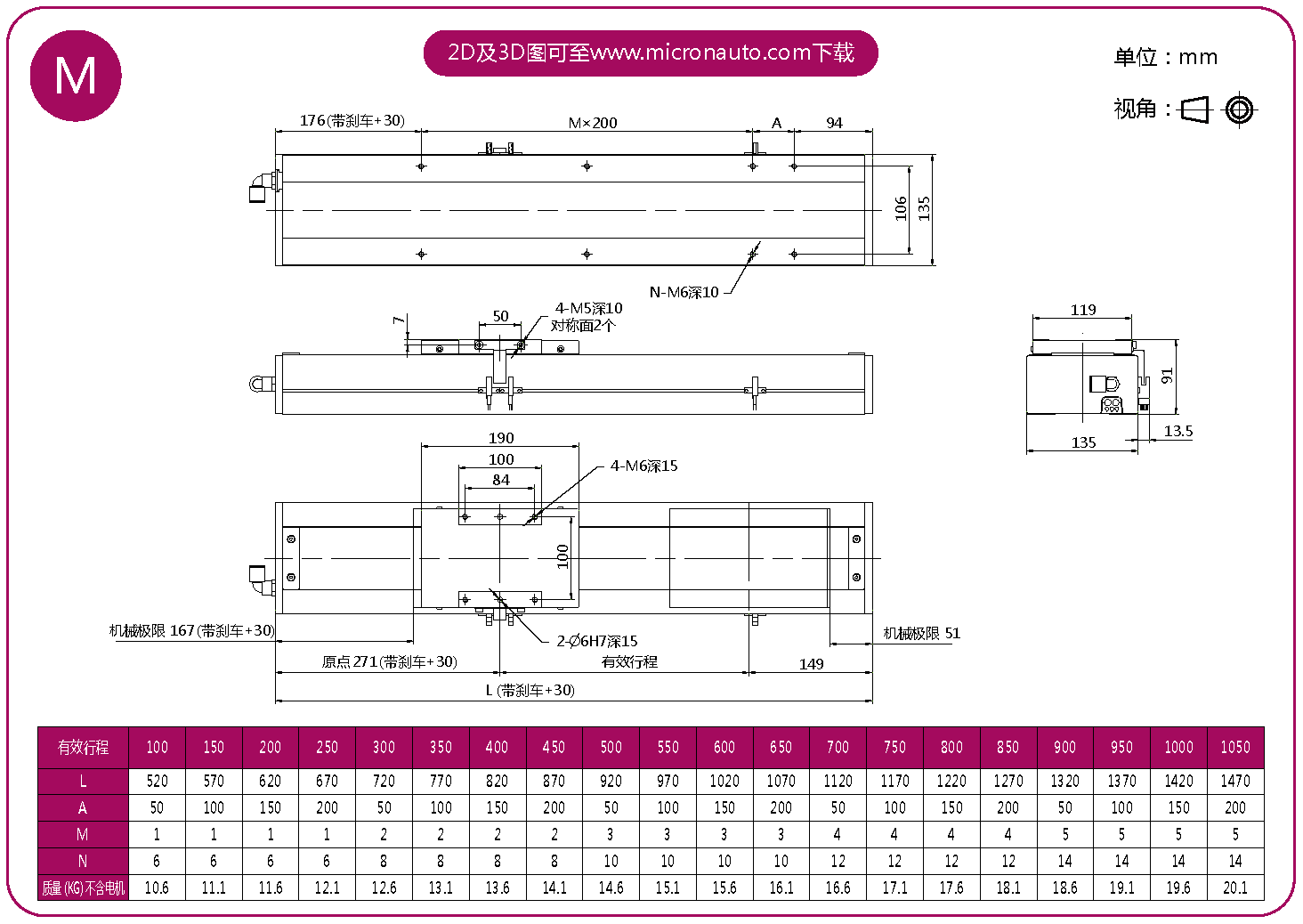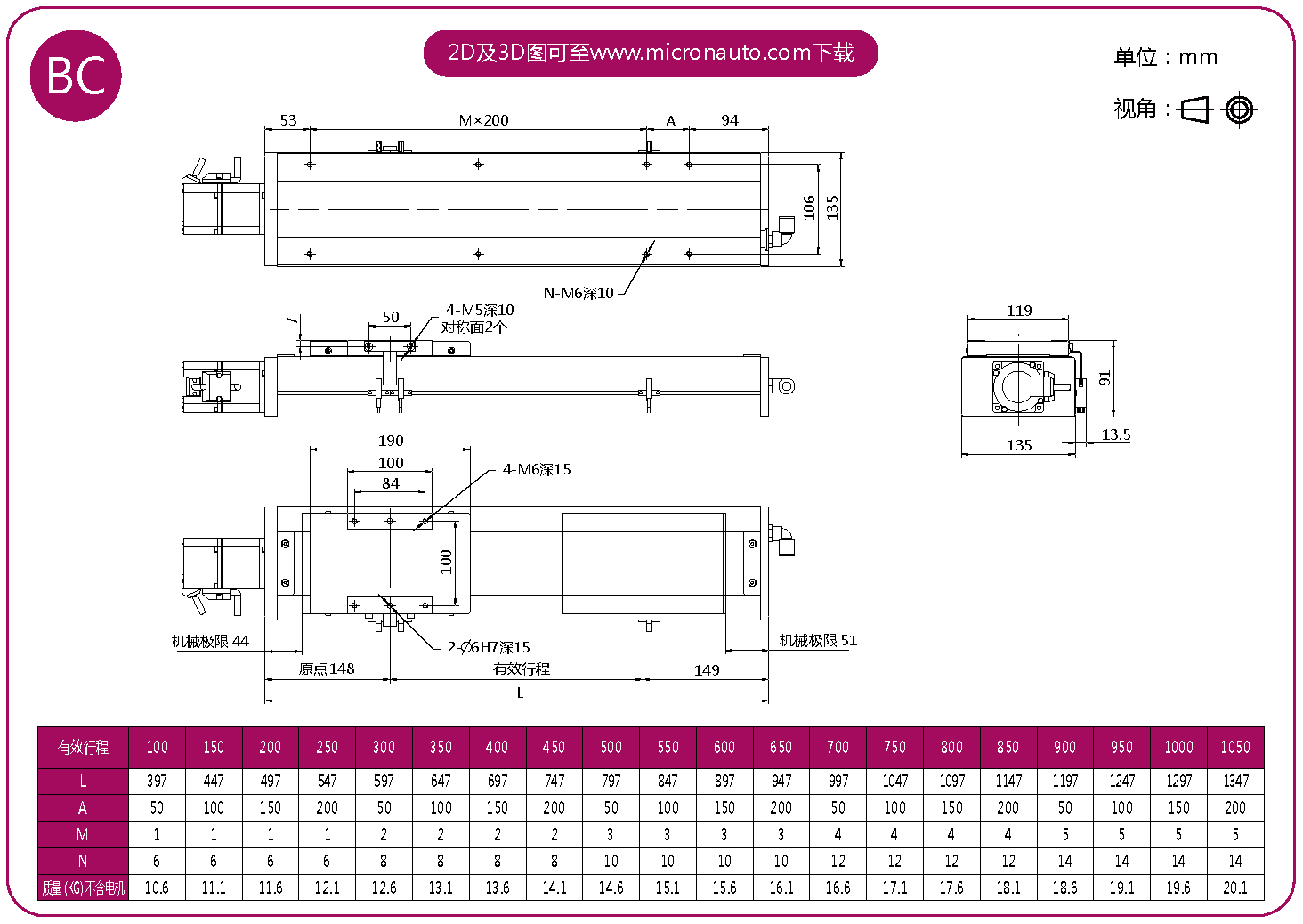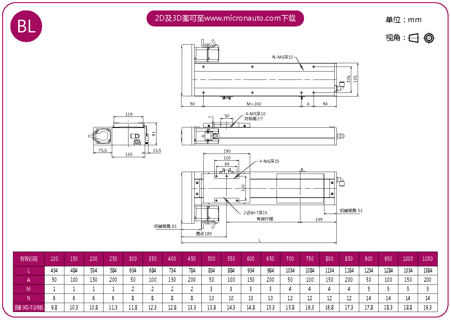 標(biāo)準(zhǔn)有效行程: 100~1050mm(間隔50mm)