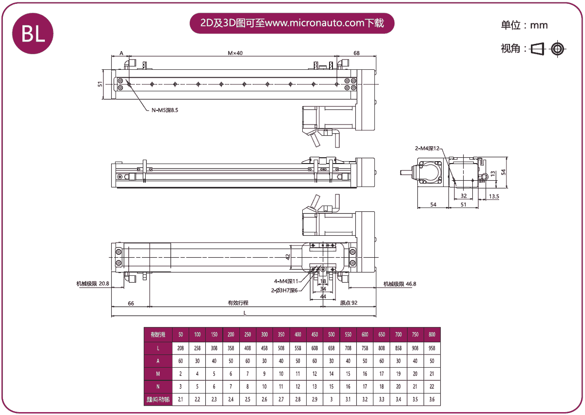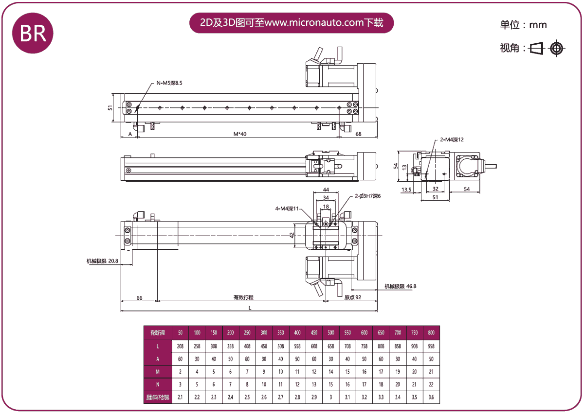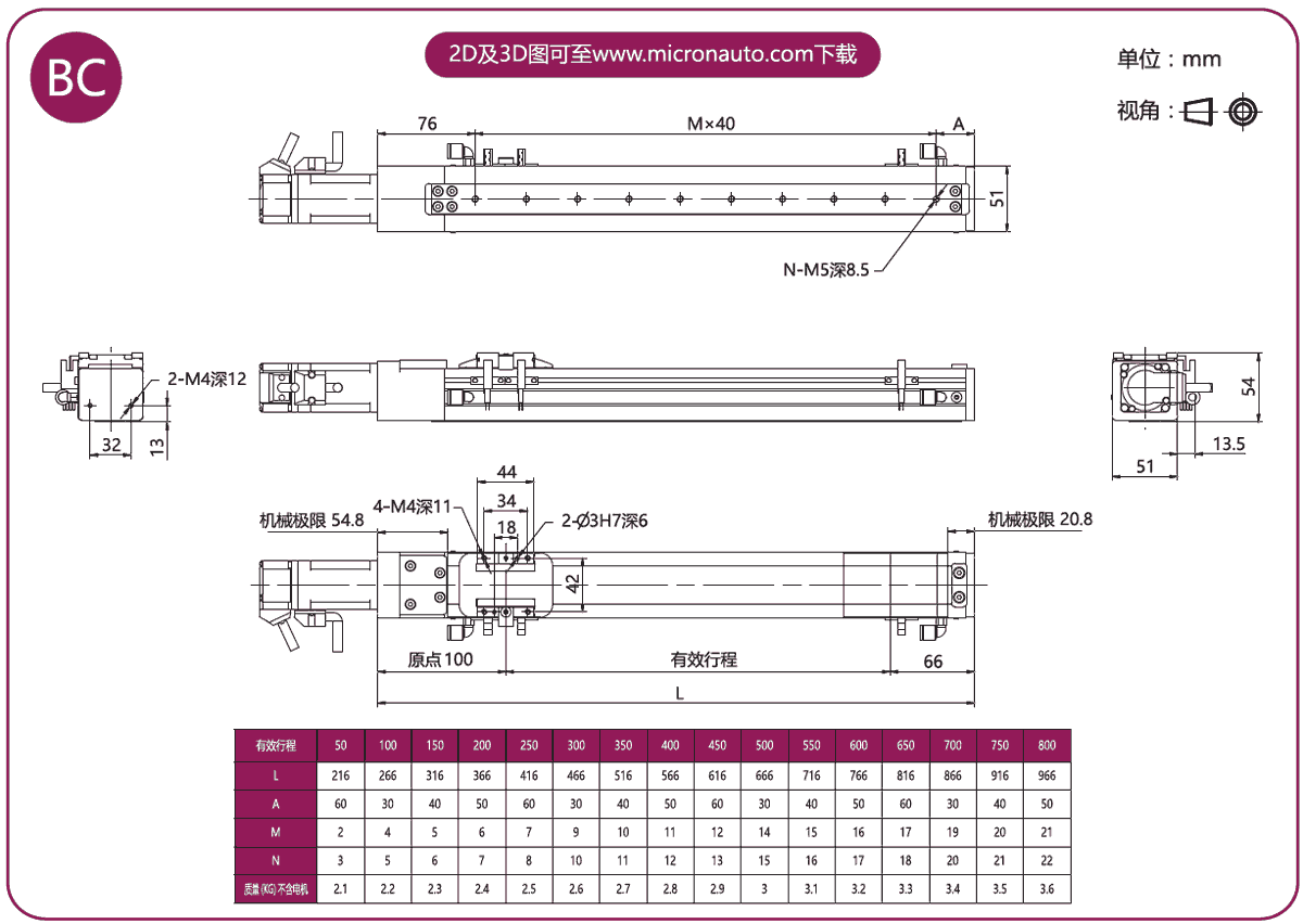 標(biāo)準(zhǔn)有效行程: 100~800mm(間隔50mm)