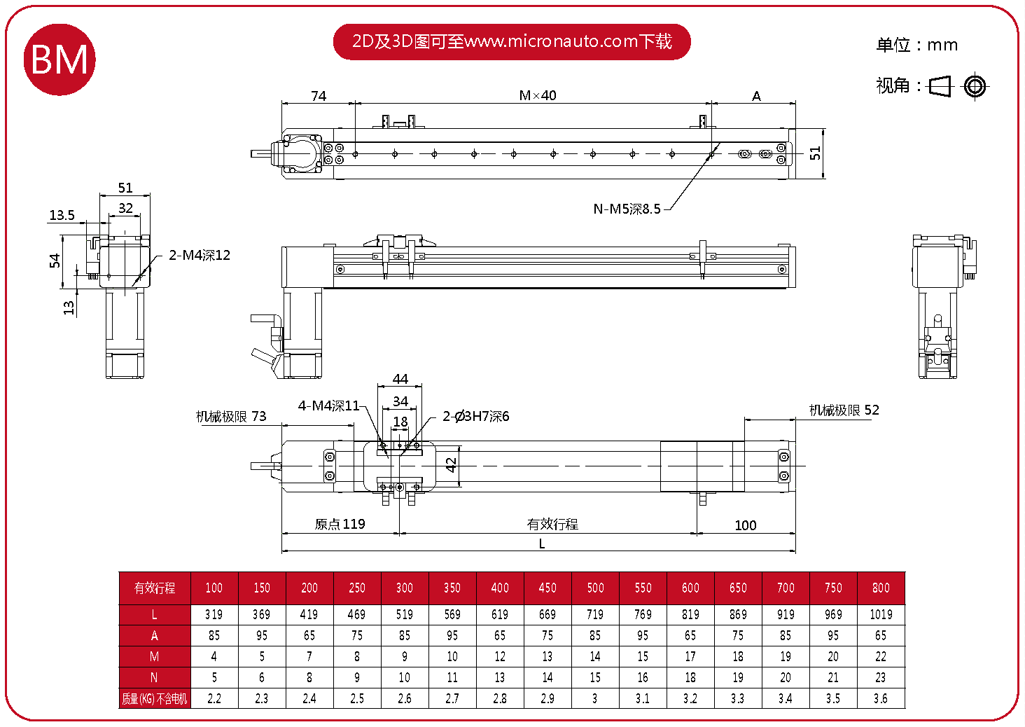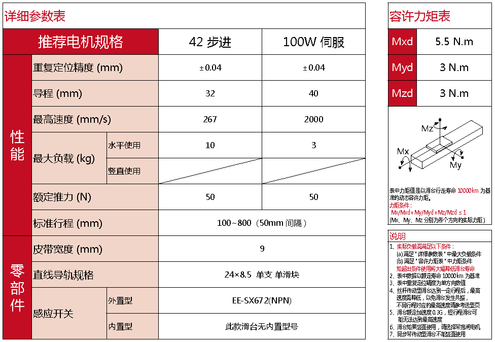 標(biāo)準(zhǔn)有效行程: 100~800mm(間隔50mm)